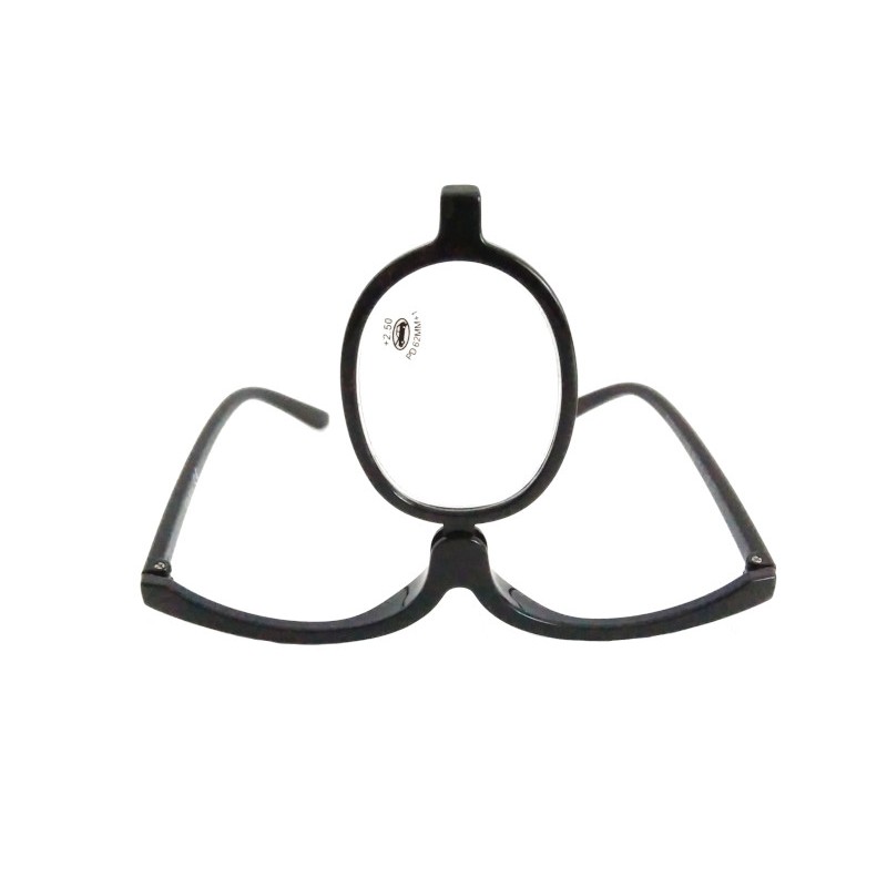 Gafa de maquillaje negra, con una lente móvil de izquierda a derecha.